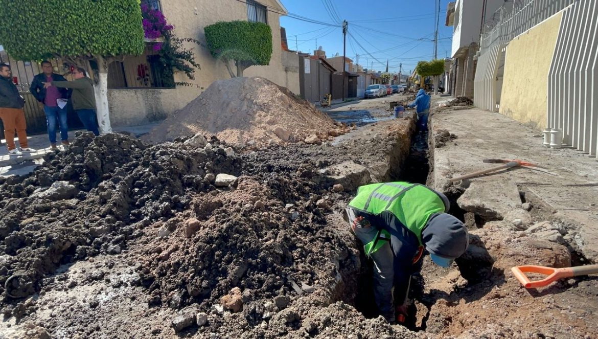 En el fraccionamiento La Hacienda se ejecuta la primera etapa de reposición de más de 3 mil metros de tubería de PVC hidráulico, lo que beneficiará a más de mil 355 habitantes.