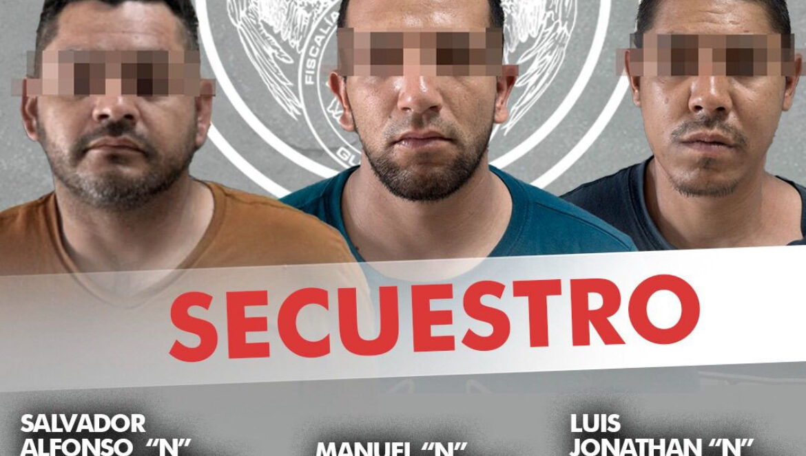 Irapuato, Gto. 9 de abril de 2024.- Elementos de la Unidad Especializada en Combate al Secuestro de la Fiscalía de Guanajuato, desplegaron actividades de inteligencia que permitieron ubicar y detener en Irapuato a *SALVADOR ALFONSO “N”* alias “El Chaparro”, *LUIS JONATHAN “N”* alias “El Jalisco” y *MANUEL “N”* alias “El Mudo”, integrantes de un grupo criminal dedicado al secuestro.