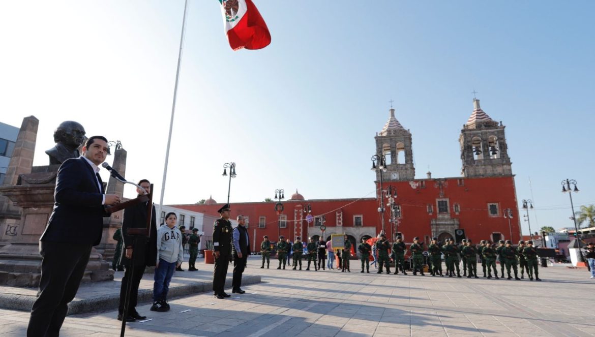 El primer izamiento de Bandera se llevó a cabo en la Plaza Cívica “Miguel Hidalgo”, con la presencia d el Coronel Edgar Alonso Arroyo Salinas.
