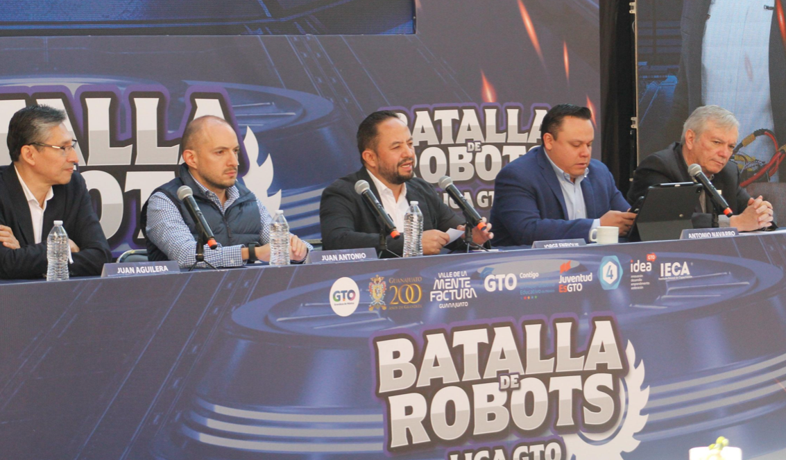 Guanajuato, Gto. 24 de enero de 2024.- En rueda de prensa, la Secretaría de Educación de Guanajuato, en coordinación con Juventudes GTO; Idea GTO; IECA y TV4, dieron a conocer la realización del primer torneo universitario Batalla de Robots Liga Gto, a llevarse a cabo el próximo 22 de febrero.