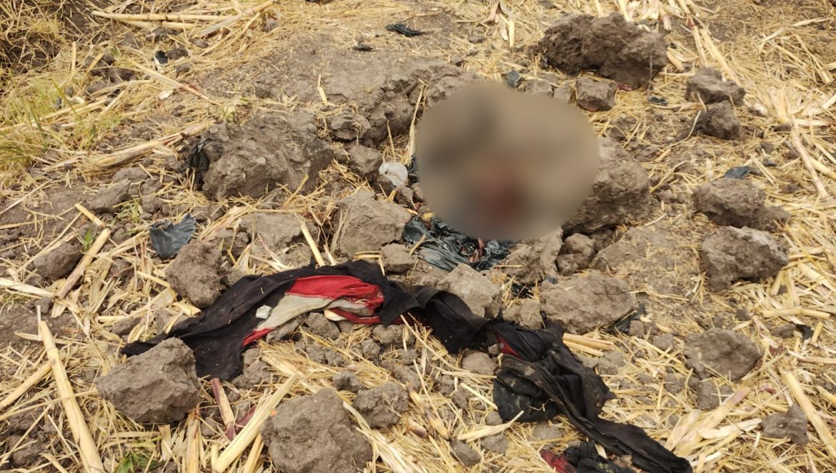 En el lugar había un cráneo y partes de un cuerpo semi enterrado que al parecer fue sustraído por la fauna de lugar ya que estaba en medio de un sembradío.