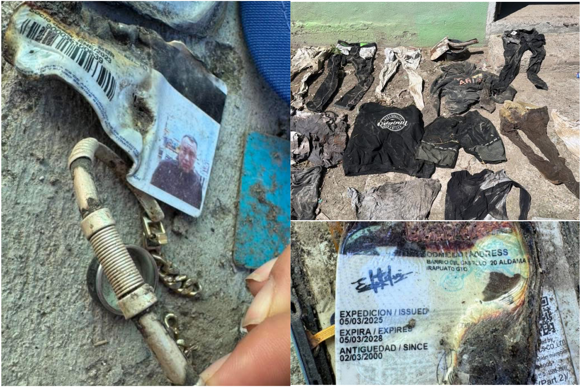 En la zona también fueron recuperados diversos indicios, entre ellos más de 30 objetos y prendas de vestir, gorras, tatuajes visibles, credenciales de servicio de transporte privado y pertenencias personales, que fueron fotografiados y difundidos con el propósito de que familiares de personas desaparecidas puedan reconocerlos.