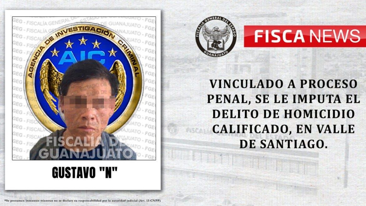Valle De Santiago, Gto. (29/may0/2023).- Con pruebas fehacientes, el Ministerio Público obtuvo que GUSTAVO “N” fuera enviado a prisión, acusado de asesinar a su tocayo Gustavo “N”, el 21 de junio de 2021, en la comunidad Santa Bárbara, en Valle de Santiago.