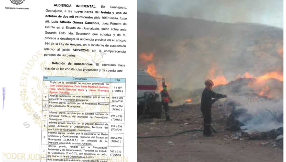 Guanajuato.(04/10/2024).-A casi año y medio del incendio registrado en el basurero de Guanajuato Capital, un juez de Distrito concedió un amparo definitivo a un grupo de ambientalistas y ordenó al gobierno municipal abstenerse de abrir y de otorgar autorizaciones para abrir nuevas zonas para la disposición de residuos sólidos urbanos, que no cumplan con la regulación de impacto ambiental las normas oficiales aplicables al caso.