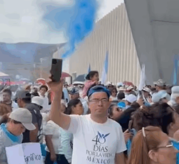 Sin embargo, se vieron opacadas por cerca de 300 personas que con vestimentas blancas y azules, se pronunciaron a favor de la vida y en contra de la legalización del aborto.