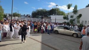 Celaya, Gto. (22/9/2025).- Pacientes y personal médico de la clínica del ISSSTE, fueron desalojados tras presentarse el derrame de una sustancia qen el área de hemodiálisis, minutos antes de las 9:00 de la mañana de este lunes.