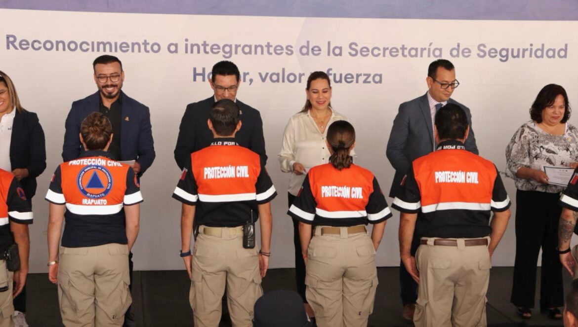 Irapuato, Gto. (24/3/2025).- Por participar en la detención de una célula dedicada a la extorsión, atención a partos y apoyo para apagar incendios, entre otras acciones, fueron reconocidos integrantes de la Secretaría de Seguridad Ciudadana de Irapuato.