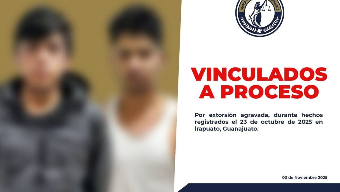 Irapuato, Gto. (4/11/2025).- La Fiscalía General del Estado de Guanajuato obtuvo vinculación a proceso en contra de Miguel Arturo y Luis Jorge, por su probable responsabilidad en el delito de extorsión agravada en la ciudad de Irapuato.