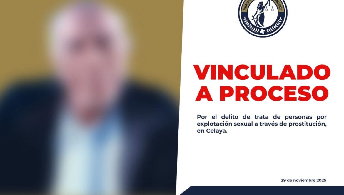 Celaya, Gto. (1/12/2025).- La Fiscalía General del Estado logró que un sujeto de 67 años de edad, identificado como José Ernesto, fuera vinculado a proceso por el delito de trata de personas por explotación sexual a través de prostitución, en la ciudad de Celaya.