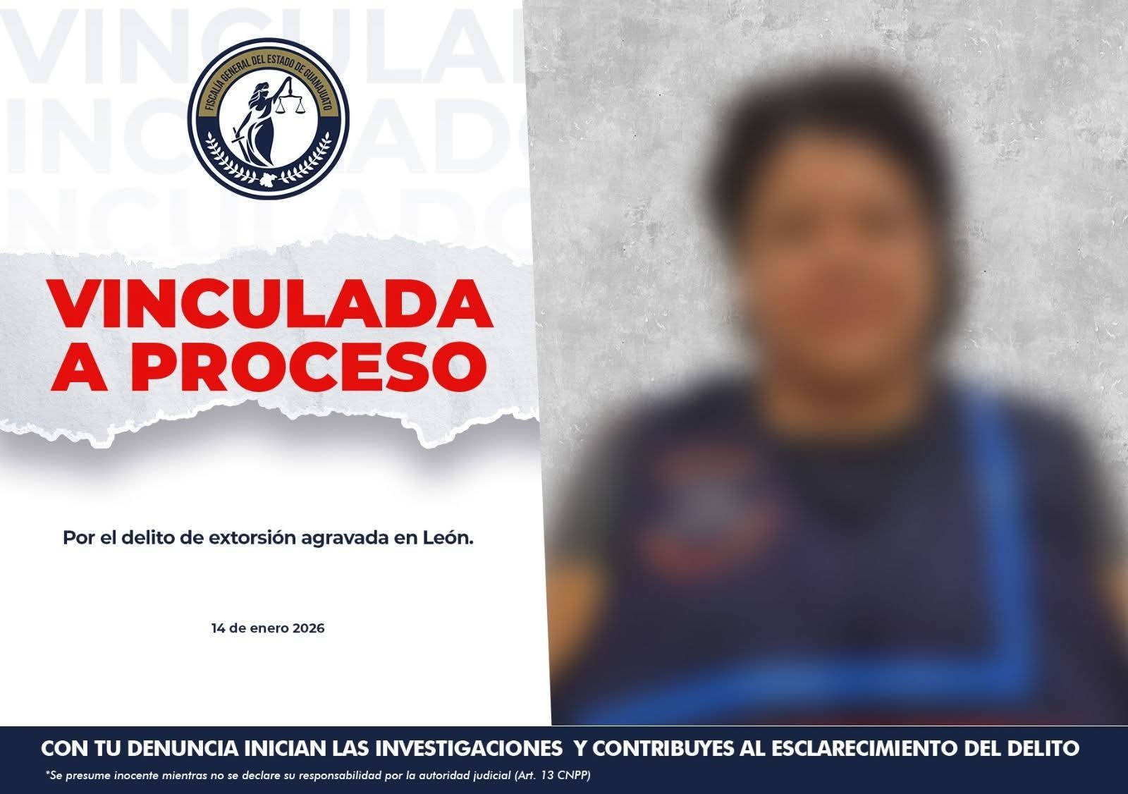 León, Gto. (14/1/2026).- Como resultado de una investigación integral y en desarrollo, se logró la vinculación a proceso de dos personas por el delito de extorsión agravada, relacionadas con hechos ocurridos el 19 de noviembre de 2025, en la colonia Colinas del Carmen, en León.