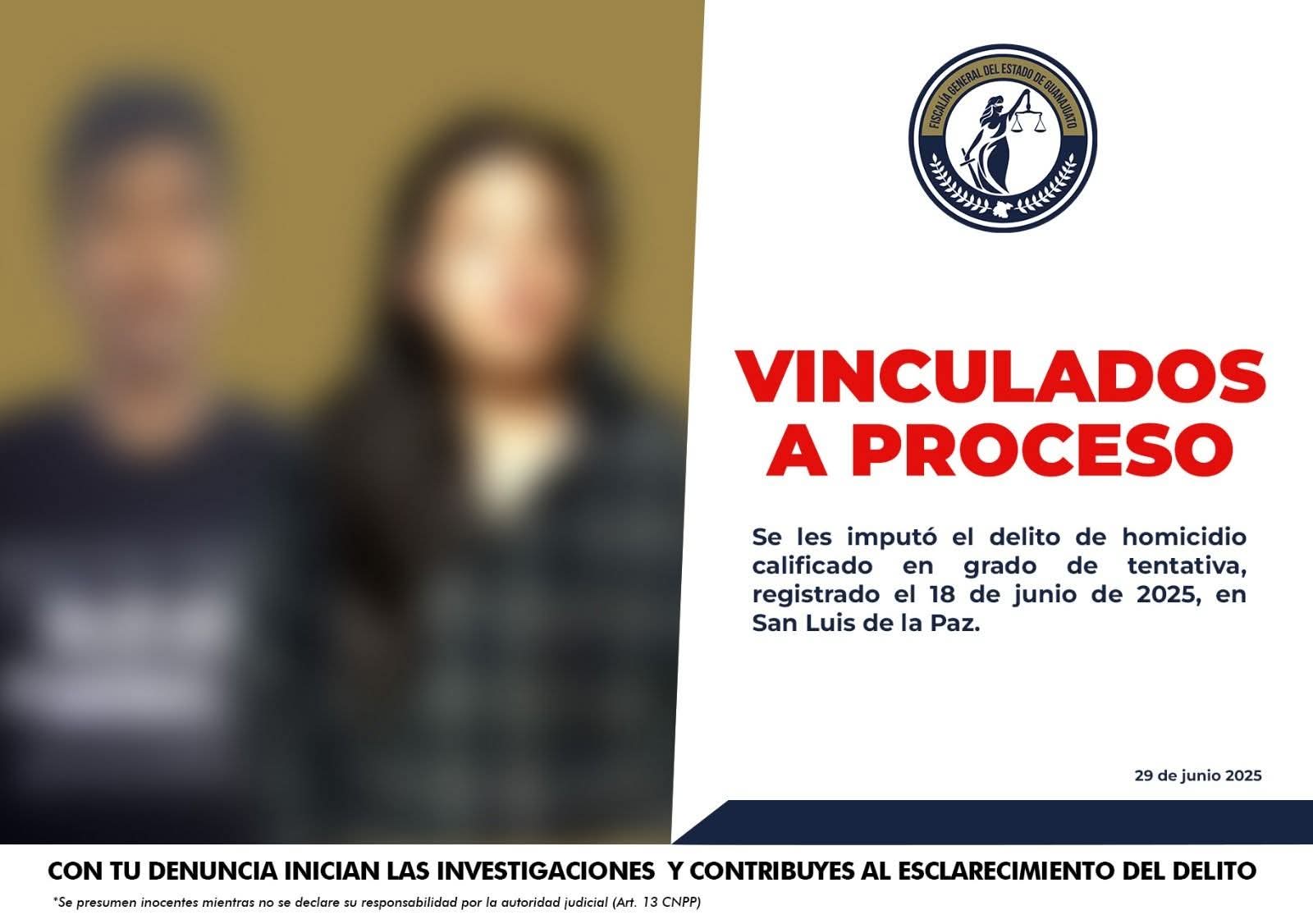 San Luis de la Paz, Gto. (30/6/2025).- Un hombre y una mujer fueron vinculados a proceso por intento de homicidio, en hechos registrados este 18 de junio, en el municipio de San Luis de la Paz.