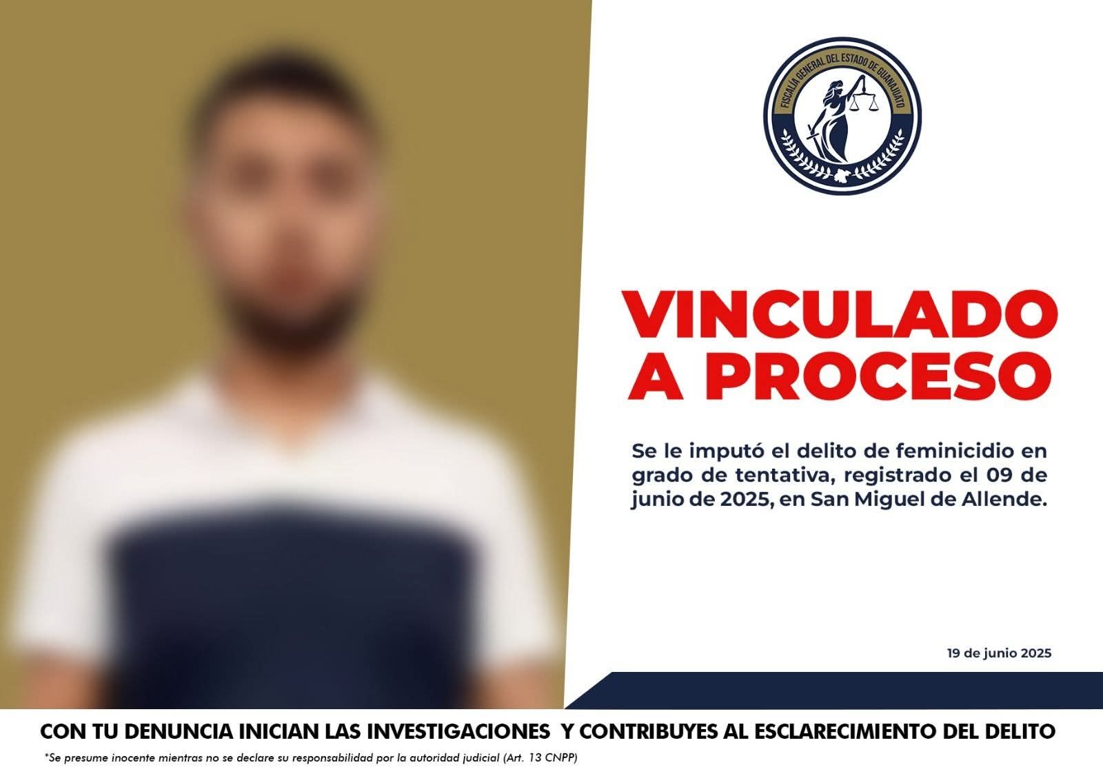 San Miguel de Allende, Gto. (19/6/2025).- Un sujeto identificado como José Gerardo, ha sido vinculado a proceso por intento de feminicidio, en hechos registrados la madrugada de este 9 de junio, en el centro de San Miguel de Allende.