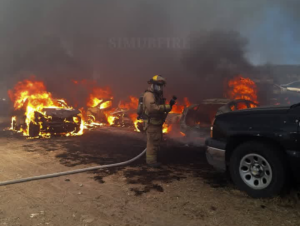 Guanajuato. (10/2/2026).- Cuantiosas pérdidas materiales dejó como saldo el incendio en la pensión de automóviles ubicada en San José de Tránsito, la tarde de este lunes. Un total de 61 vehículos quedaron calcinados.