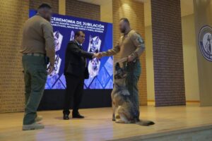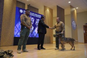 El relevo generacional no se hizo esperar, y la ceremonia sirvió de marco para dar la bienvenida a dos nuevos binomios especializados en localización de explosivos: “LORA” (Braco Alemán) y “AXEL” (Pastor Belga Tervueren), se integran a la Unidad K-9, tras completar 240 horas de formación especializada y una certificación en el Hill Country Dogs Center en Texas, fortaleciendo las capacidades operativas de la Fiscalía.