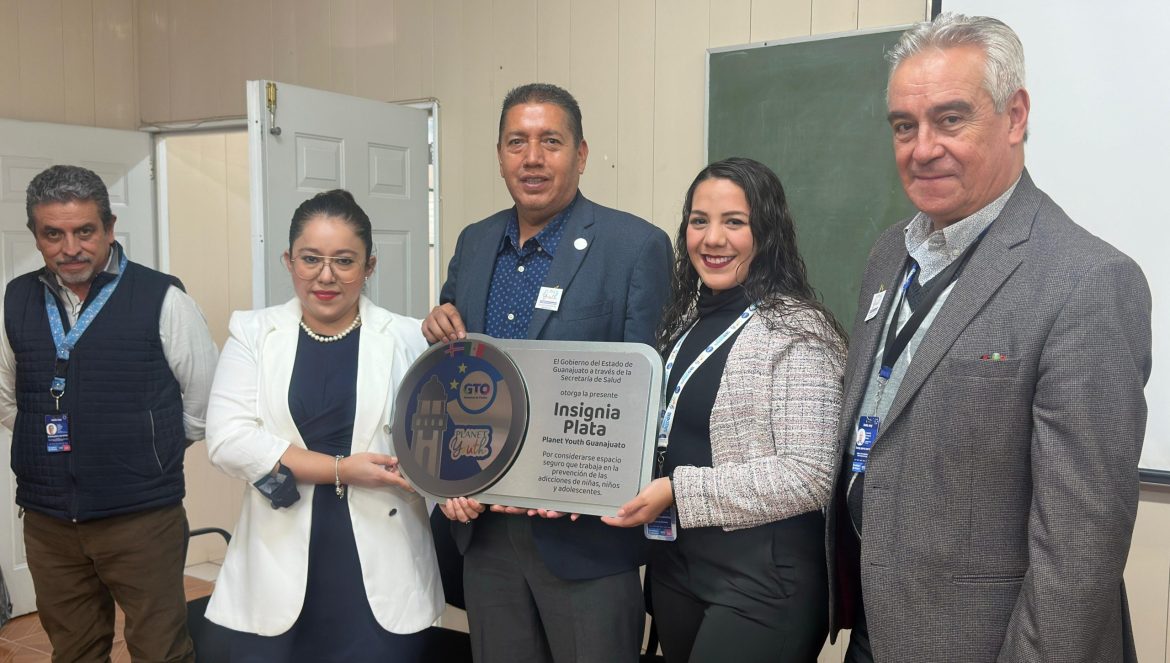 Irapuato, Gto. (15/12/2023).- El Sistema de Salud Gto entregó 9 insignias Planet Youth a diferentes unidades médicas de primer y segundo nivel de atención del municipio de Irapuato.