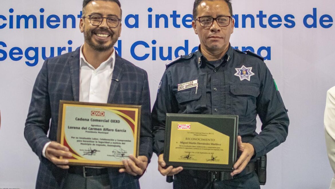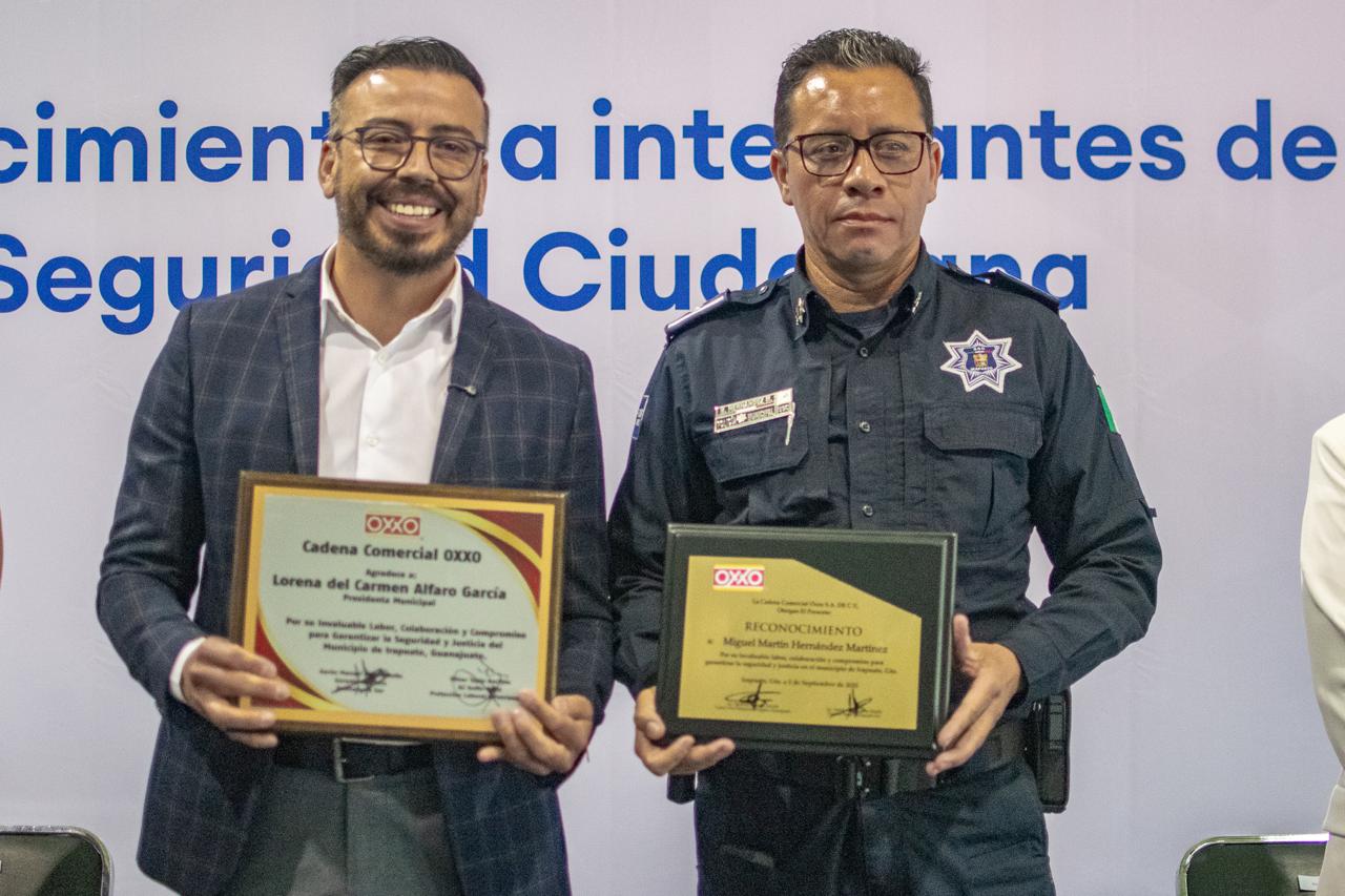 Irapuato, Gto. (22/10/2025).- Por su destacada actuación en detenciones de individuos que afectaban el patrimonio de las tiendas comerciales de la cadena OXXO, así como de la ciudadanía en general, 22 integrantes de la Secretaría de Seguridad Ciudadana Municipal de Irapuato, recibieron un reconocimiento por parte de representantes de dicha cadena.
