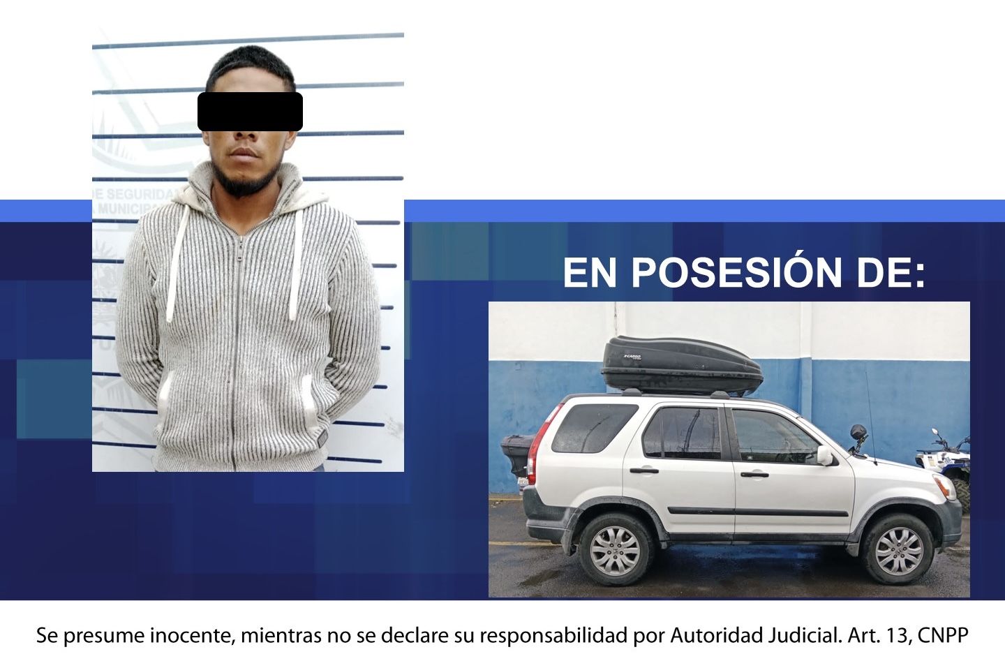 En otro caso, un masculino fue detenido por personal de la Policía Municipal de Irapuato cuando viajaban a bordo de una camioneta CV-R Honda con reporte de robo vigente.