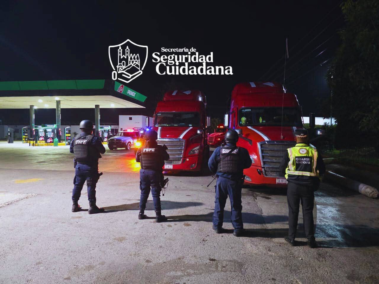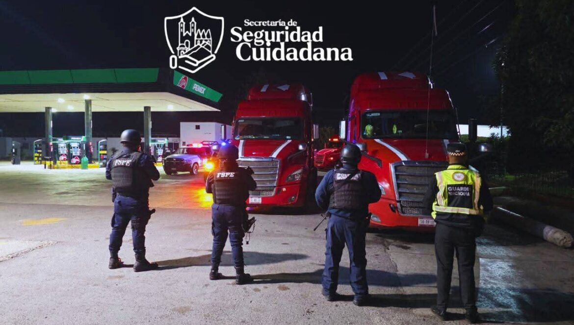 Gracias a la rápida respuesta y coordinación de las corporaciones de FSPE, Guardia Nacional y Policía Municipal, se logró localizar y asegurar los tractocamiones.