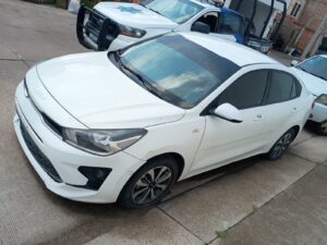 Finalmente, de la calle Posada Santa Fe del fraccionamiento Los Arcos, elementos de la Policía Municipal localizaron un vehículo de la marca KIA, Río, modelo 2022, color blanco, el cual presentó reporte de robo vigente y tablillas