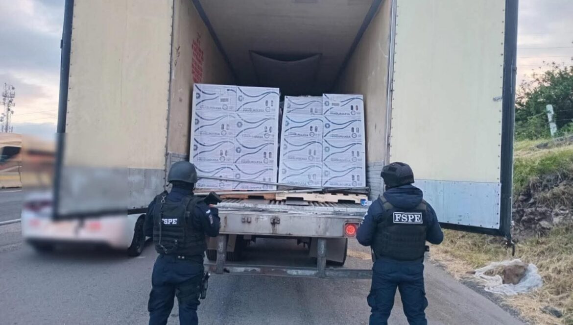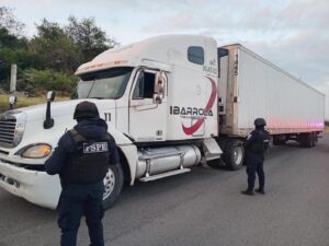 Apaseo el Grande, Gto. (10/10/2025).- Integrantes de las Fuerzas de Seguridad Pública del Estado, en coordinación con la Guardia Nacional lograron el aseguramiento de un tractocamión con reporte de robo, cuya mercancía en su interior está valuada en más de 5 millones de pesos.