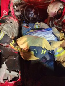 Tras cerrar por completo la vialidad, se realizaron maniobras de extracción para liberar a los tripulantes, los cuales fueron trasladados por elementos de Cruz Roja Delegación San Miguel de Allende y Ambulancias SEETS.