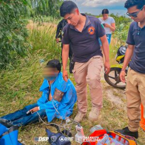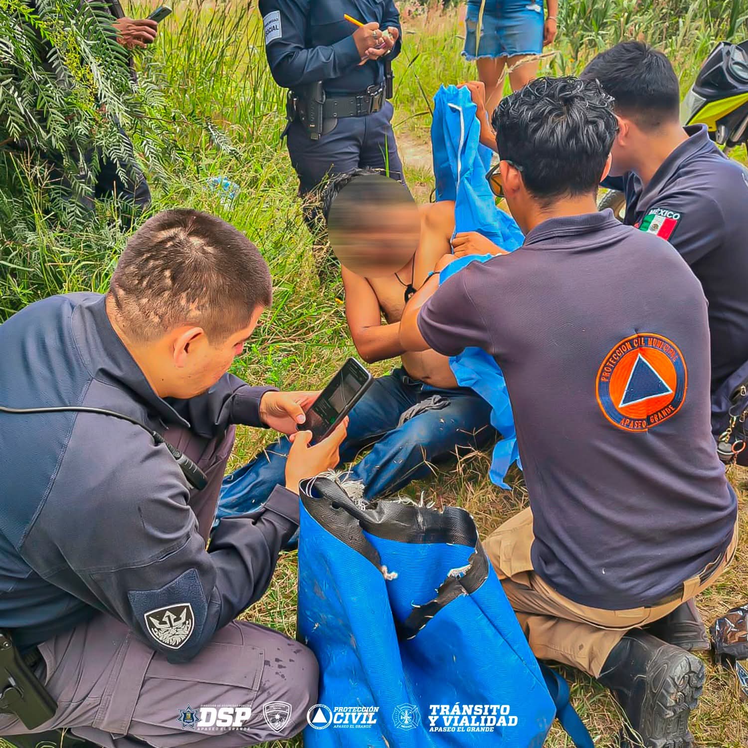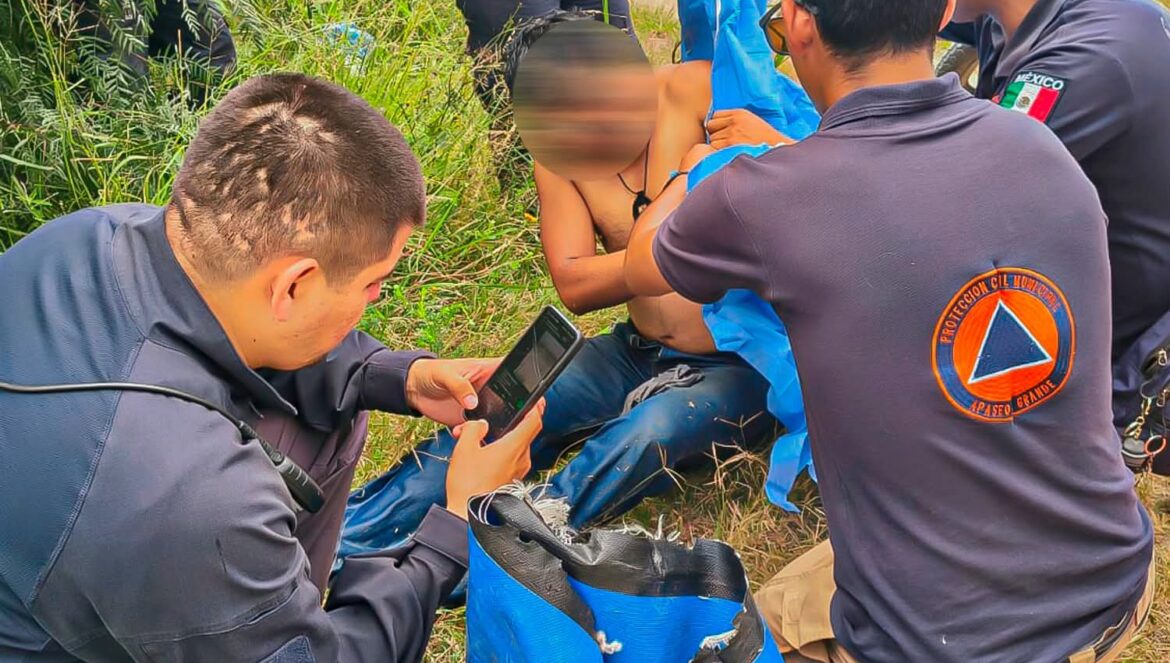 Apaseo el Grande, Gto. (29/9/2025).- Un hombre que se encontraba en peligro, en el bordo de la Comunidad de Tenango el Nuevo, fue rescatado por un policía.