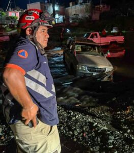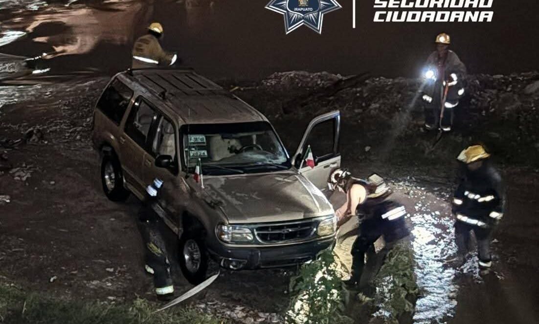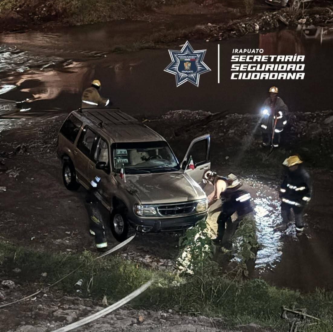 Coordinados a través del C4 de la SSCM de Irapuato, al lugar se desplazaron las unidades de Protección Civil y Bomberos, confirmando que una camioneta se encontraba dentro del río y estaba siendo arrastrada por la corriente.