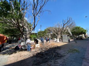 Ante esta situación, la Dirección de Parques y Jardines procedió con el retiro del primer ejemplar. En las próximas semanas se llevará a cabo la remoción de los dos árboles restantes, así como su sustitución por nuevos ejemplares que cumplan con las dimensiones adecuadas y que puedan ser trasplantados a jardineras en condiciones óptimas.