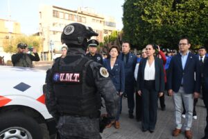 Irapuato, Gto. (20/10/2025).- La presidenta municipal, Lorena Alfaro García refrendó su compromiso para devolver la paz a las familias irapuatenses, durante el pase de lista a elementos de la corporación, en el que presentó a la nueva titular de la Secretaría de Seguridad Ciudadana, María del Consuelo Cruz Galindo.