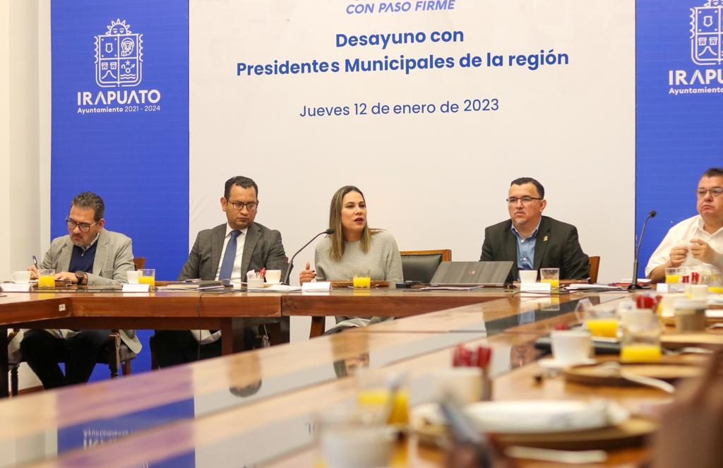 Irapuato, Gto. (12/enero/2023).- La alcaldesa Lorena Alfaro se reunió con Presidentas y Presidentes de Pénjamo, Romita, Huanímaro, Cuerámaro, Pueblo Nuevo y Valle de Santiago.