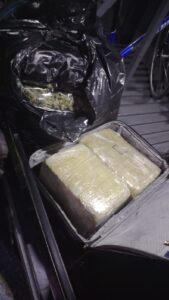 Salamanca, Gto. (19/1/2026).- Integrantes de la Policía Estatal de Caminos, aseguraron 38 kilogramos de marihuana equivalentes a más de 38 mil dosis durante un operativo de inspección carretera.