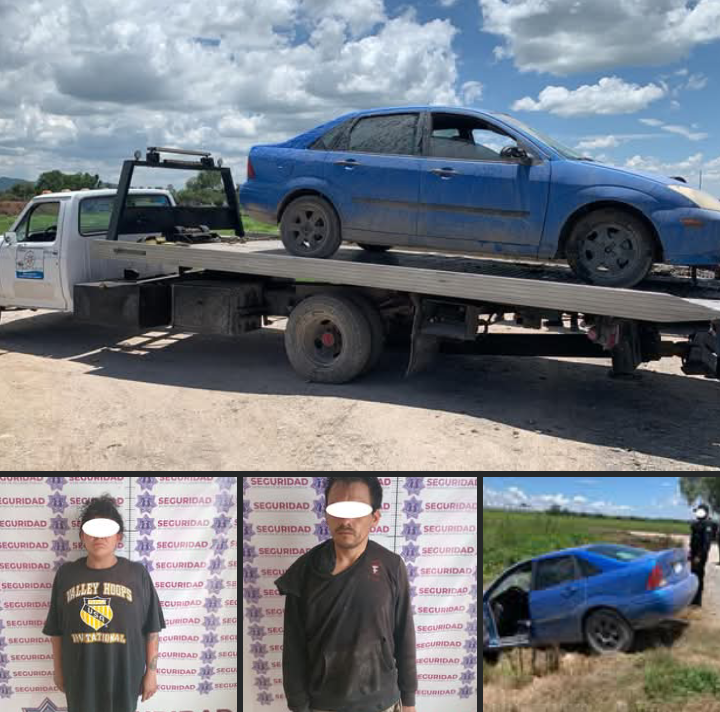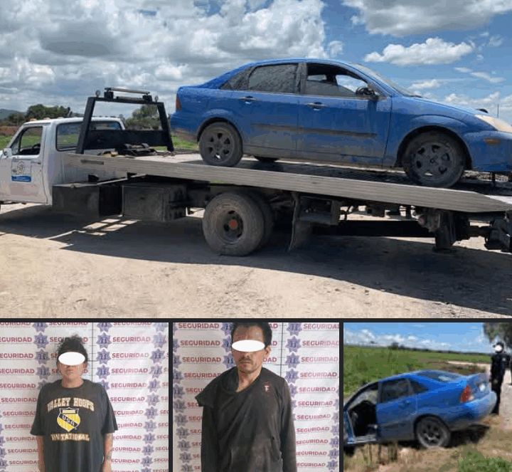 San José Iturbide, Gto. (24/7/2025).- Tras una persecución, dos personas fueron detenidas por oficiales de la Secretaría de Seguridad Pública Municipal, de San José Iturbide, con apoyo de autoridades estatales de Guanajuato (FSPE) por su posible participación en el robo de un vehículo.