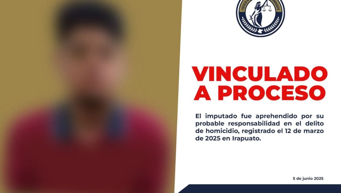 Irapuato, Gto. (6/6/2025).- Un sujeto identificado como Cristian Fabián, ha sido vinculado a proceso por el delito de homicidio en Irapuato.