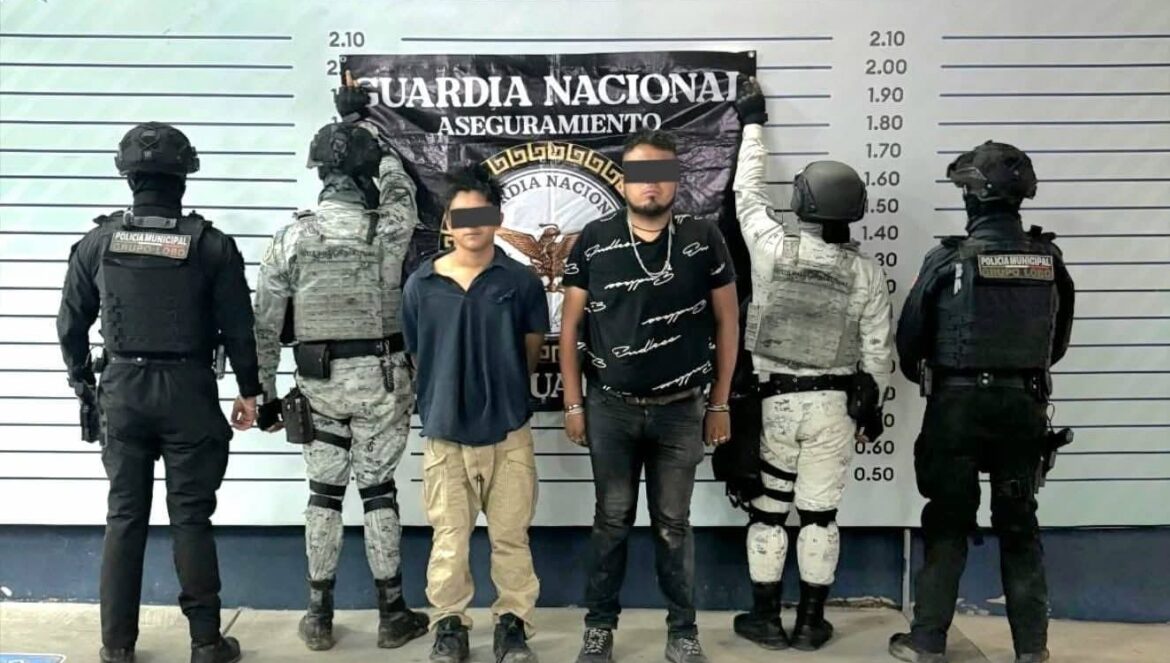 Los policías se aproximaron y confirmaron que había dos hombres armados, quienes al notar su presencia corrieron hacia una casa en construcción para esconderse pero ahí mismo fueron detenidos.