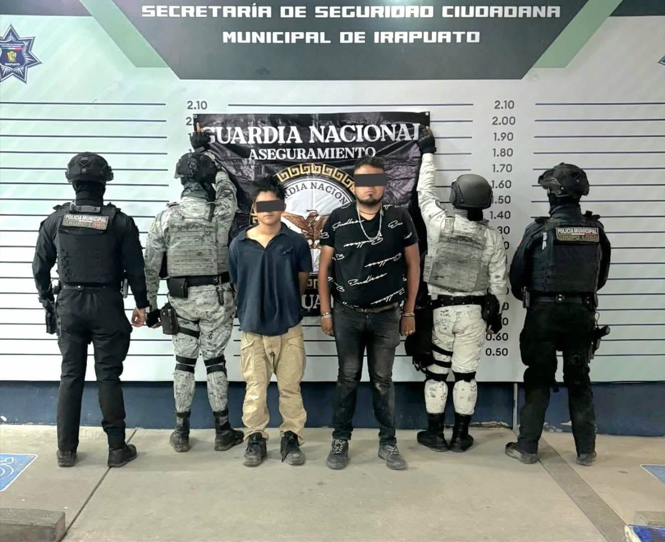 Irapuato, Gto. (1/7/2025).-La Fiscalía General del Estado de Guanajuato, logró a través de una prontaintegración e investigación, que dos jóvenes detenidos en flagrancia enposesión de un arsenal, vehículos y una víctima privada de la libertad,