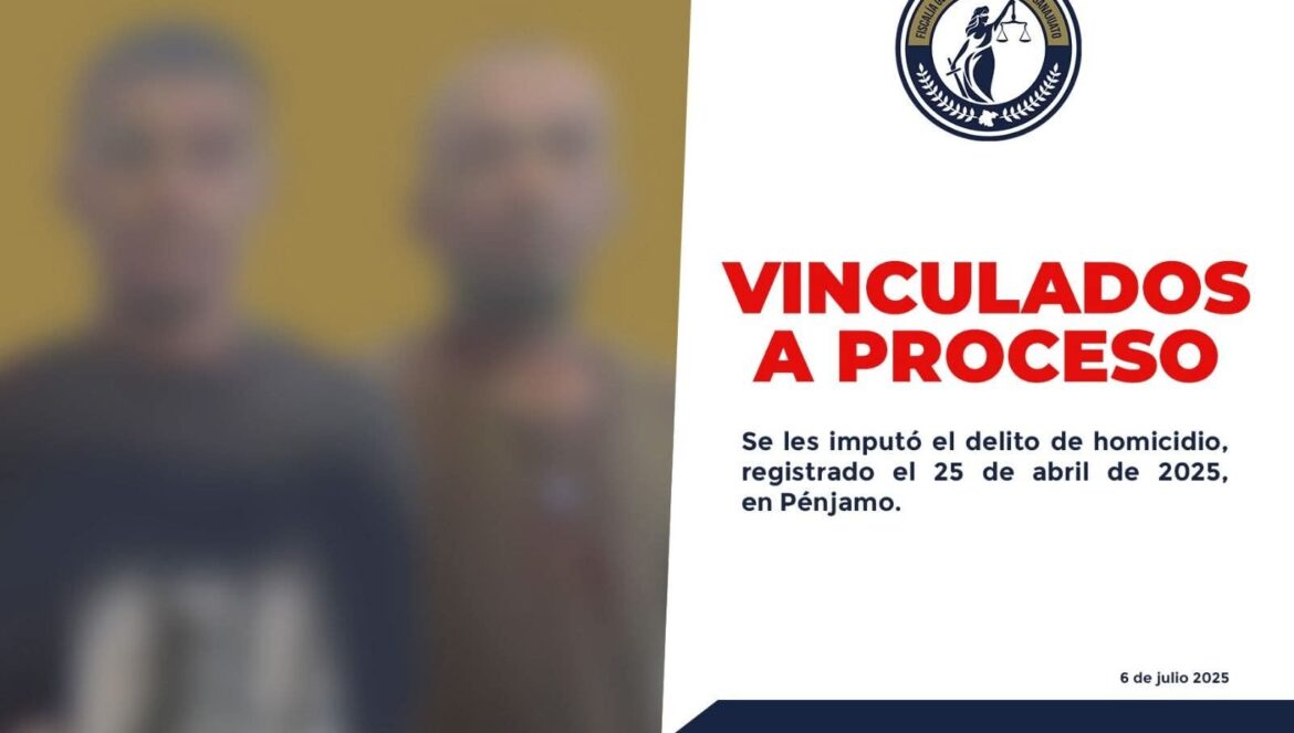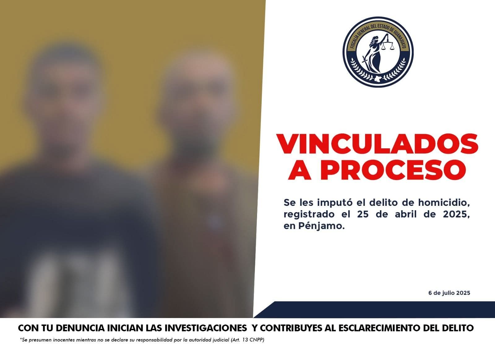 Pénjamo, Gto. (7/7/2025).- La Fiscalía General del Estado de Guanajuato, tras una exhaustiva investigación y presentación de pruebas ante la jueza, logró la vinculación a proceso penal para Juan Luis alias «blaky» y Marco Antonio alias «el may o el maiki» por el delito de homicidio.