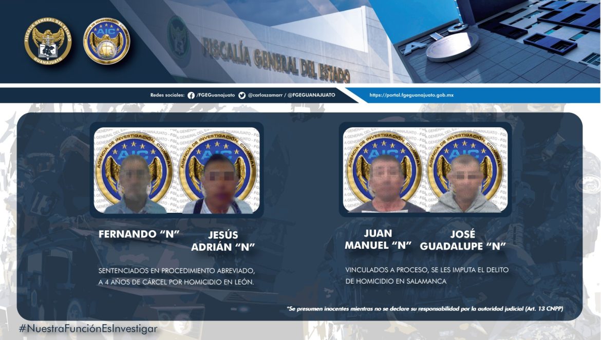 Salamanca, Gto. (31/enero/2023).- Cuatro sujetos fueron detenidos por asesinar a dos mujeres en distintos hechos en Salamanca.